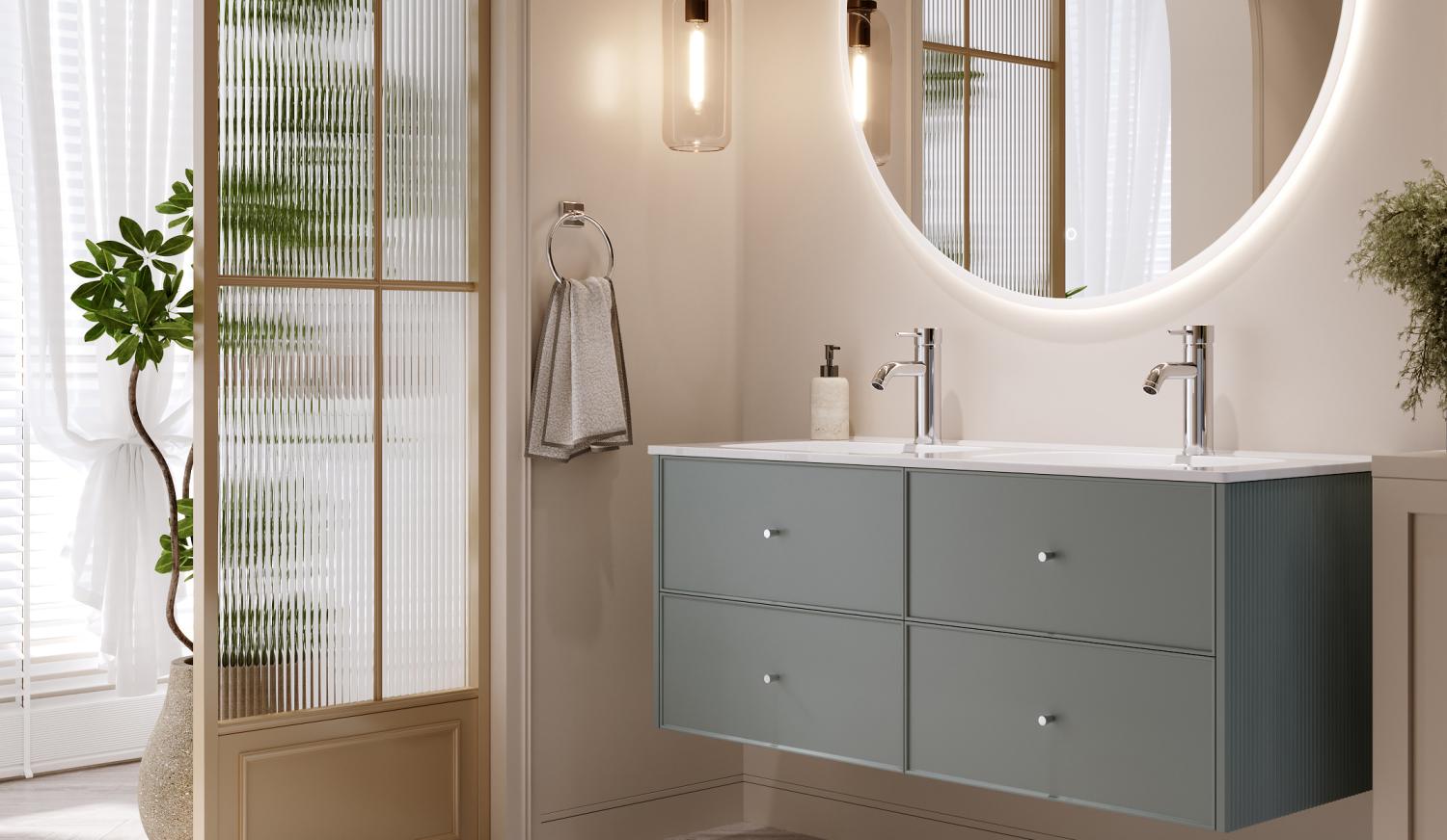 Upptäck vår nya badrumsserie för hösten 2024 med eleganta kommoder, badrumsspeglar och sidoskåp i tre färger. Välj mellan integrerade handfat eller po...