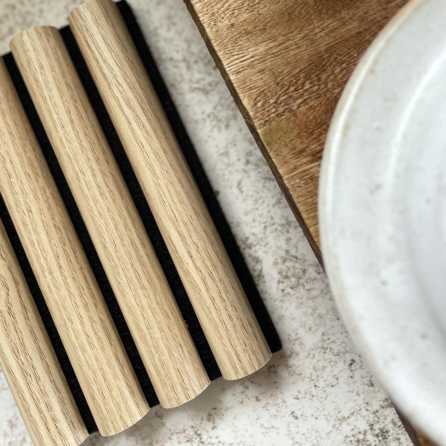 Om du vill testa akustikpanelen i ditt hem, beställ gärna ett prov för att se vilken färg som passar hos er & i ert rum. Panelerna kan placeras i både väggar & tak, i sovrummet, vardagsrummet, i barnens rum eller där man önskar skapa en ombonad känsla. Om ni söker ett varmare intryck som samtidigt andas skandinavisk design är vår ljusa ek ett alternativ som andas "Japandi", den trend som vi ser alltmer & som mixar den japanska enkelheten med den ljusa skandinaviska känslan.