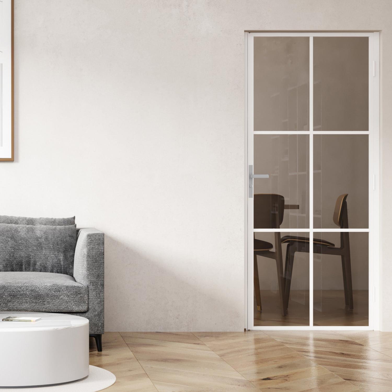 Create an industrial wall using this industrial doors with tempered safety glass and profiles made of white aluminum