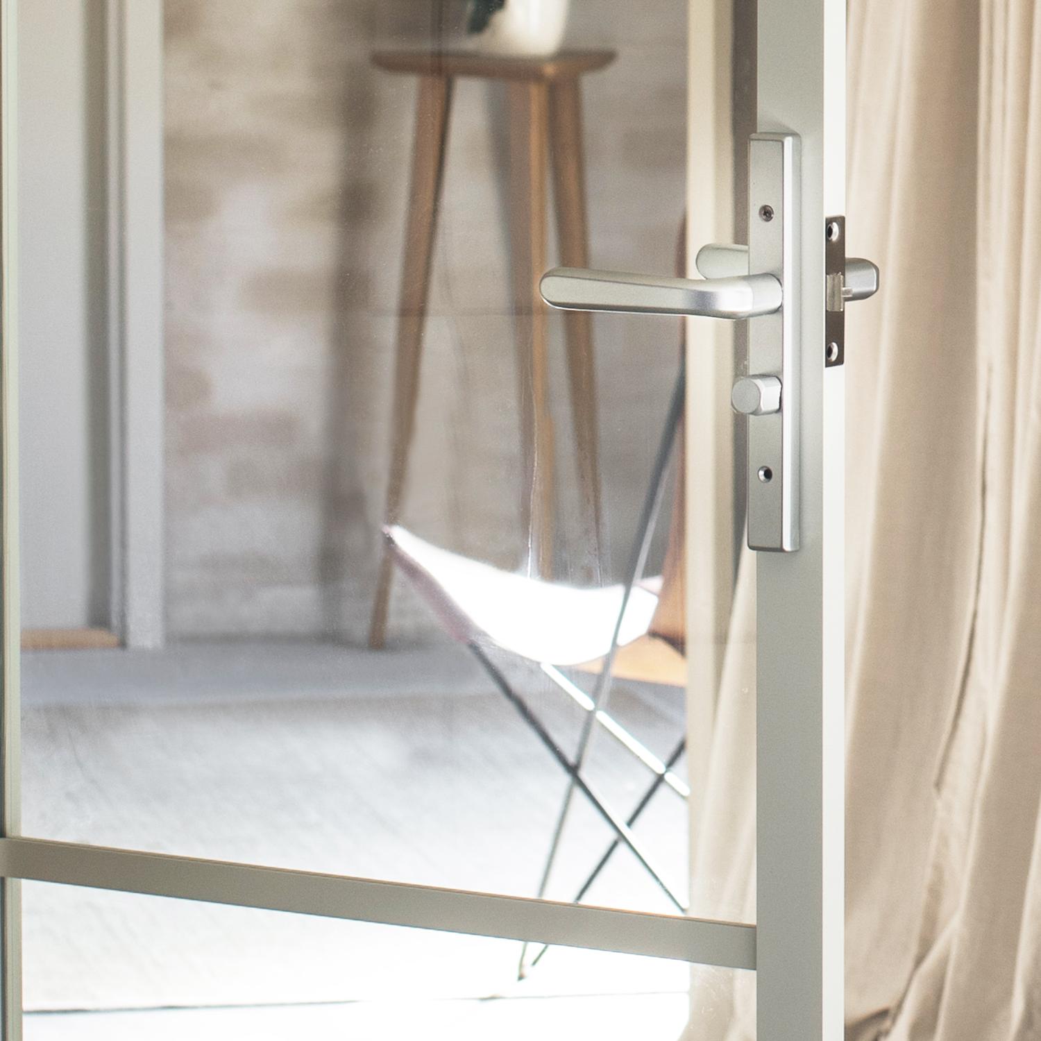 Keep the natural light in the room with our industrial wall in black-painted aluminum. Our industrial walls and doors can be used in every room of the home, even in the bedroom. They are easy to assemble and can be constructed in various combinations with different lengths and heights, as the parts can be easily put together, creating a "room within a room." The mullions are also made of aluminum for an industrial feel. Please note that the appearance varies between the walls; 50, 60, 70, 80 cm walls have three windows, while 90, 100 cm walls have six windows.