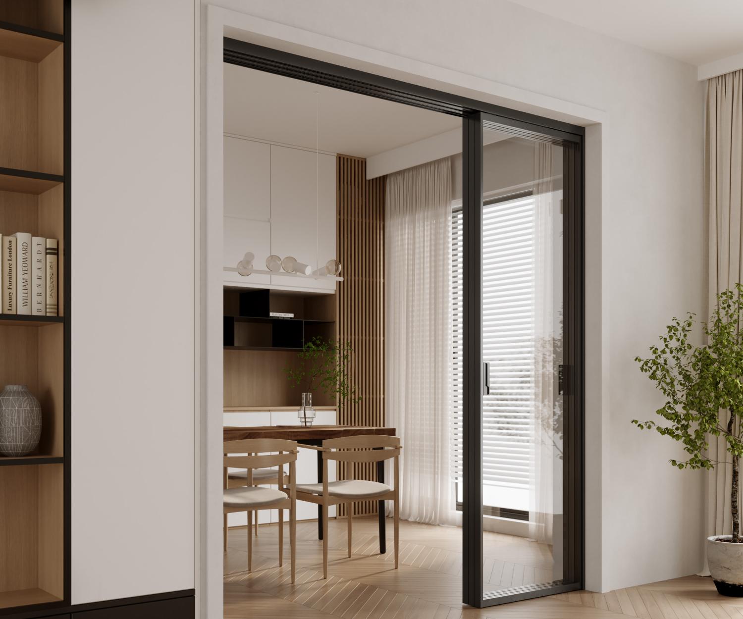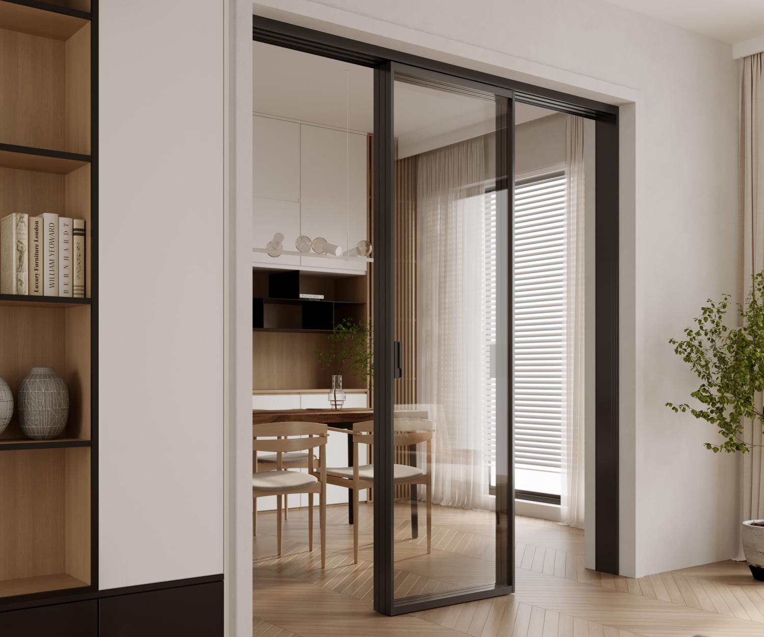 - Sleek Design: The clean, streamlined look of top-hung sliding doors contributes to a modern expression. With various material options, such as glass, wood, or metal, you can easily find a door that matches your interior style.