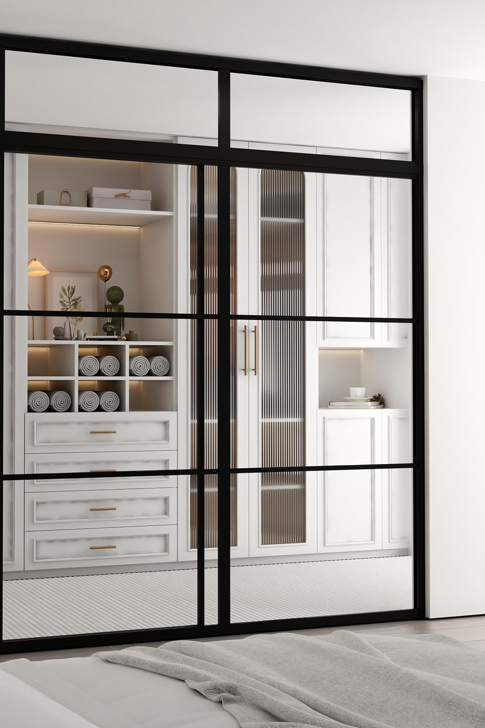 Our sliding doors can be used in every room of the home. They are easy to assemble and can be built in various combinations with different lengths and heights as the parts easily connect to "create a room within the room." The frames are made of aluminum for lifelong durability. Even the mullions are made of aluminum for that industrial feel. The glass is tempered clear safety glass, and in our sliding doors, it is also laminated. Our products are therefore extremely durable over time and are certified according to European standards and CE-marked.