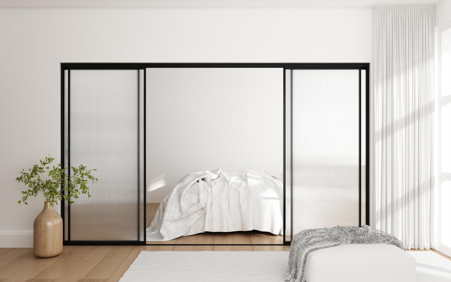 Our sliding doors can be used in every room of the home. They are easy to assemble and can be built in various combinations with different lengths and heights as the parts easily connect to "create a room within the room." The frames are made of aluminum for lifelong durability. Even the mullions are made of aluminum for that industrial feel. The glass is tempered clear safety glass, and in our sliding doors, it is also laminated. Our products are therefore extremely durable over time and are certified according to European standards and CE-marked.