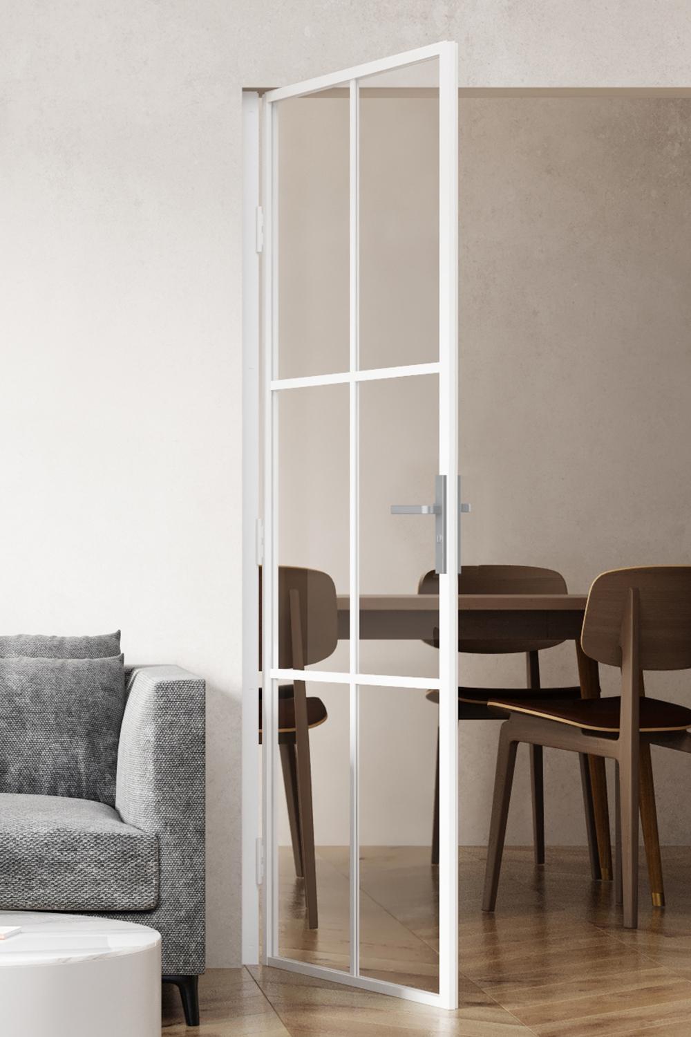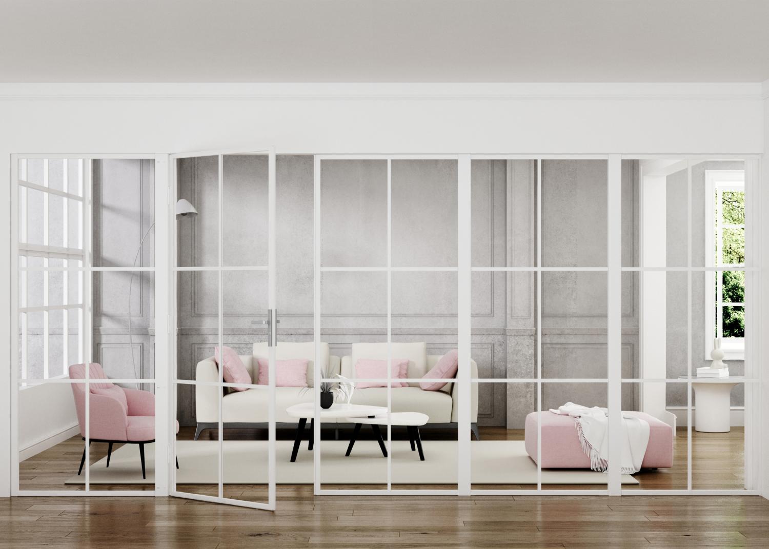 Behåll ljusinsläppet i rummet med våra industriväggar i vit eller svartlackerad aluminium. Våra industriväggar & dörrar kan användas i hemmets alla rum, även i sovrummet. De är enkla att montera & kan byggas i olika kombinationer med olika längder & höjder genom att delarna enkelt kan sättas ihop & "skapa rum i rummet." Även spröjsen är tillverkad av aluminium för den industriella känslan. Observera att utseendet skiljer sig mellan väggarna, 50,60,70, 80 cm väggar har tre fönster, medans 90, 100 cm har sex fönster. Varje vägg och dörr är justerbar, se måttskiss.