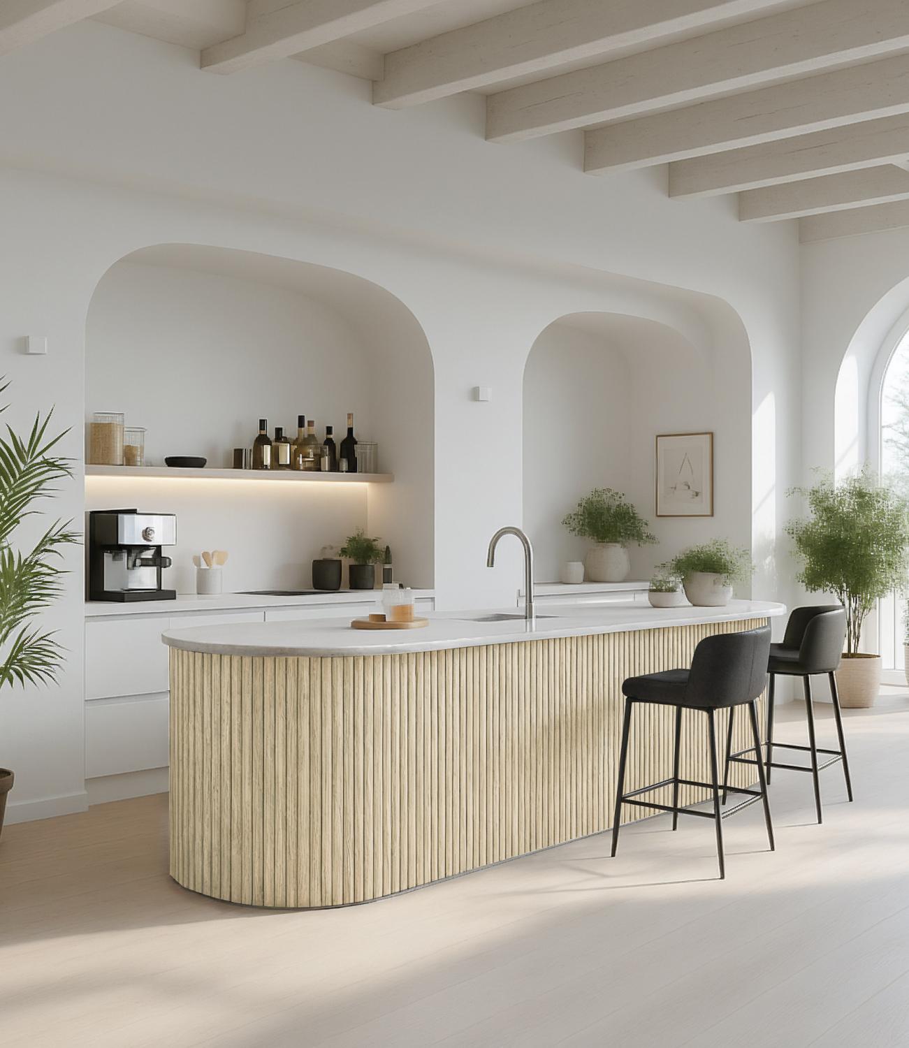 Noolis böjbara akustikpanel i rundad ljus ek är en stilren lösning som kombinerar effektiv ljuddämpning med exklusiv design. Panelen är flexibel och perfekt anpassad för hörn, svängda väggar och tak, och kan monteras både vertikalt och horisontellt.