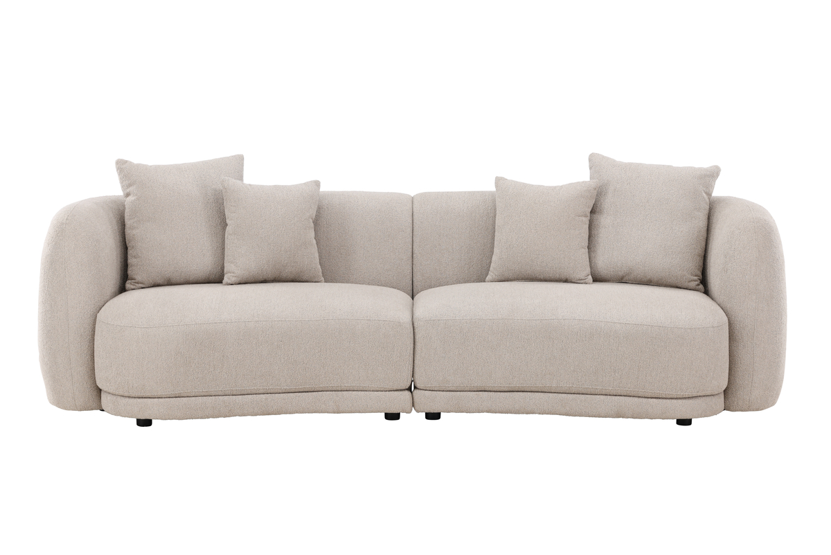 Skapa en sofistikerad och inbjudande atmosfär i ditt hem med 3-sitssoffan Cielo, klädd i lyxigt beige bouclématerial. Cielo är en perfekt kombination av modern design och oöverträffad komfort, vilket gör den till en central och elegant del av ditt vardagsrum. Det beige bouclématerialet ger soffan en unik textur och mjukhet som både ser och känns exklusiv. Denna tidlösa nyans smälter smidigt in i olika inredningsstilar, från minimalistisk till skandinavisk eller mer eklektisk, och tillför samtidigt en känsla av värme och stil till rummet. Cielo är designad med generösa sittdynor och ett bekvämt ryggstöd som inbjuder till långa stunder av avkoppling. Denna 3-sitssoffa är perfekt för både sociala tillställningar och lugna stunder, där den erbjuder en omslutande komfort som gör varje sittning till en njutning. Med sin eleganta design och det lyxiga beige bouclématerialet är 3-sitssoffan Cielo mer än bara en sittmöbel – den är ett statement-piece som höjer stilen i ditt hem. Låt Cielo bli en naturlig mittpunkt i ditt vardagsrum, där ko