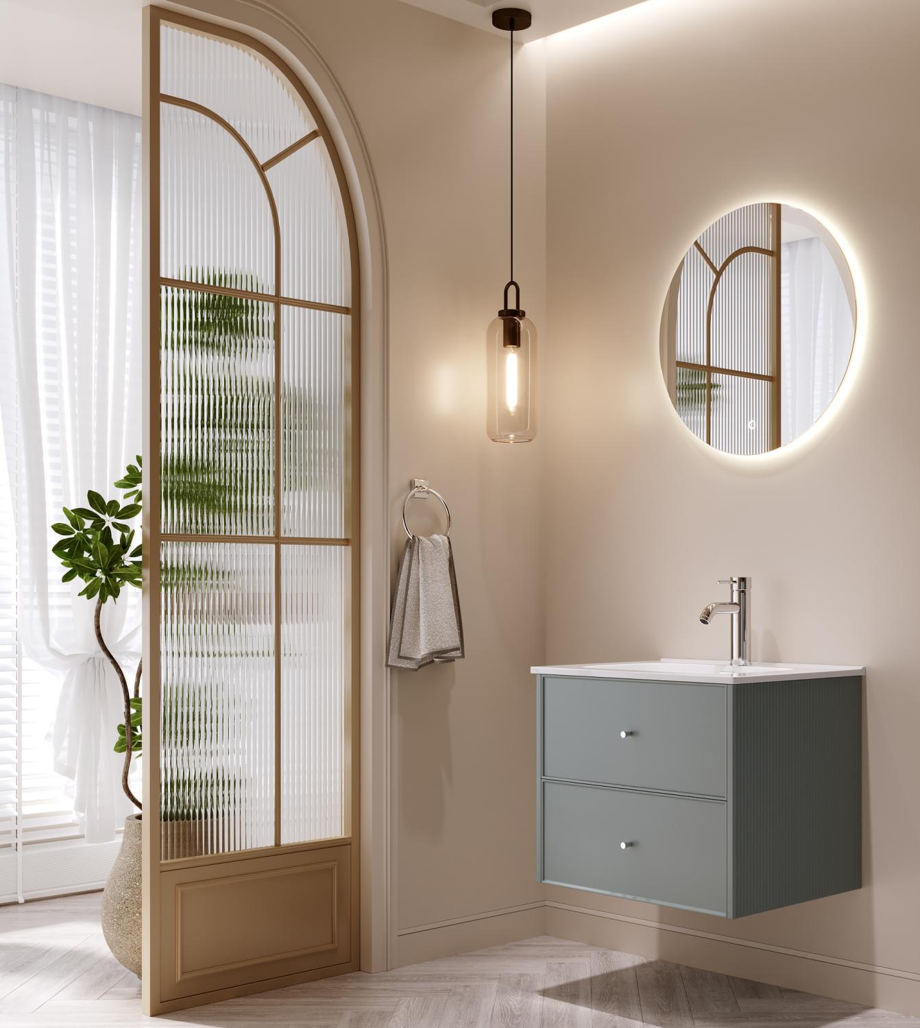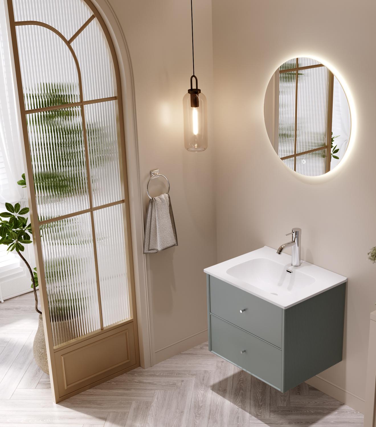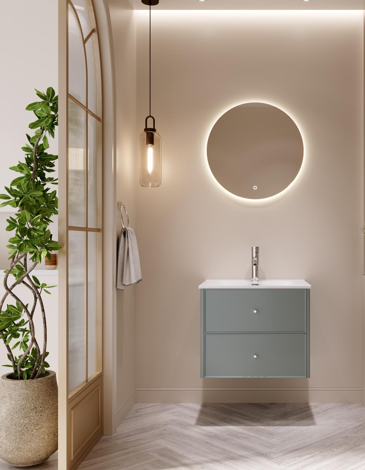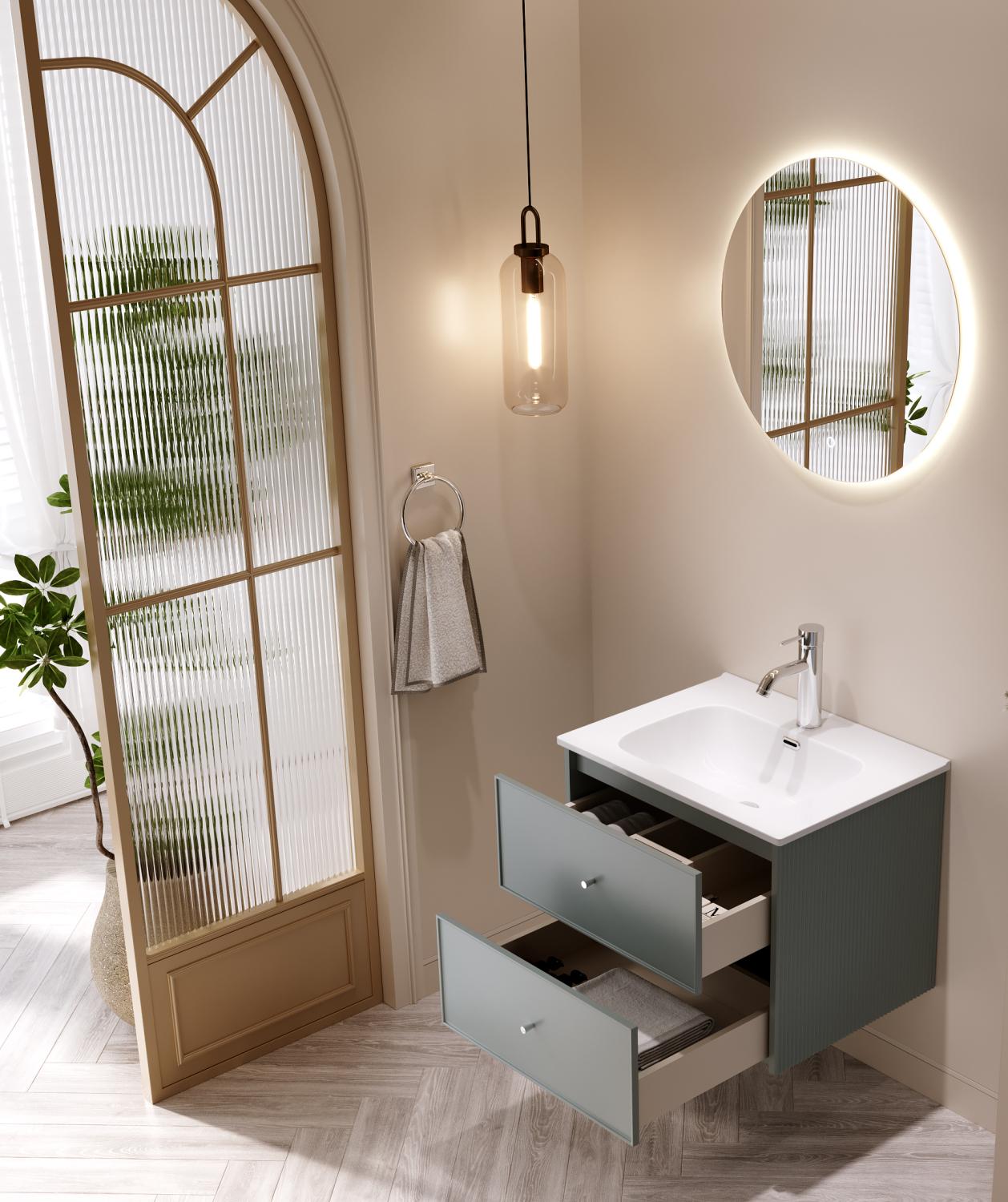 Denna kommod finns i två olika bredder 60, 80 samt fyra olika färger, matt vit, ljus ek och Canada Grey som är en ljust gråbeige nyans som gifter sig fint med våra skandinaviska färger. Ny är färgen New Zealand Stone Green, en lugn och naturlig grön nyans med inslag av grått som skapar en balanserad och tidlös känsla. Den mjuka, stenliknande tonen ger ett harmoniskt uttryck och passar perfekt i både moderna och klassiska badrum. Färgen framhäver inredningens form och material på ett elegant sätt och förmedlar en känsla av stillhet och exklusivitet.