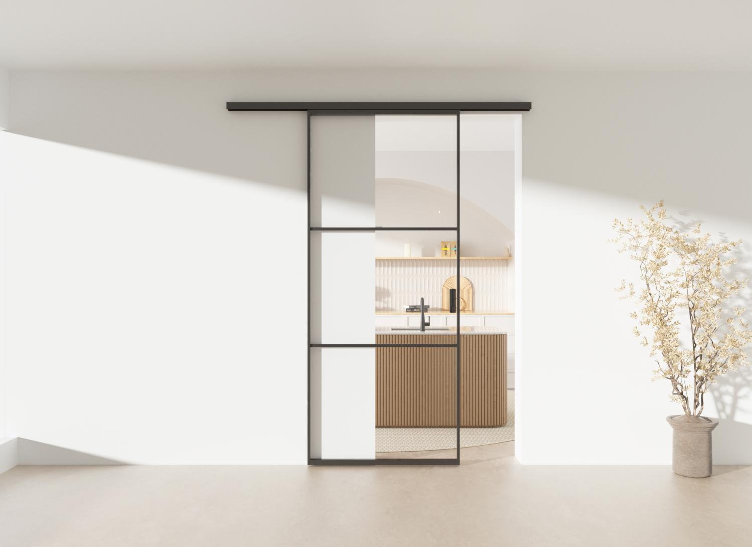 Vår topphängda skjutdörr – En smart och platsbesparande lösning för ditt hem och kontor.
