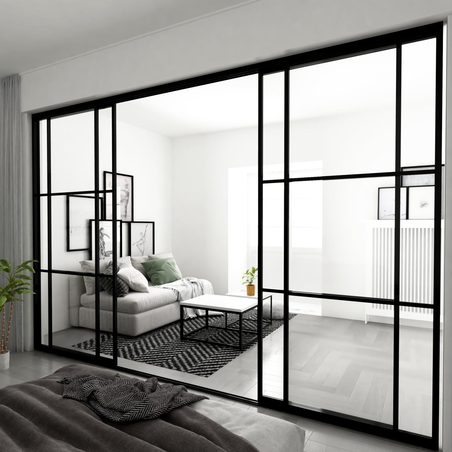 Prisvärda, enkla att montera, med möjlighet att själv bygga ihop sektioner med både dörrar & väggar. Behåll ljusinsläppet i rummet med våra industri skjutdörrar i svartlackerad aluminium. Våra skjutdörrar kan användas i hemmets alla rum. De är enkla att montera & kan byggas i olika kombinationer med olika längder & höjder genom att delarna enkelt kan sättas ihop & "skapa rum i rummet." Även spröjsen är tillverkad av aluminium för den industriella känslan.